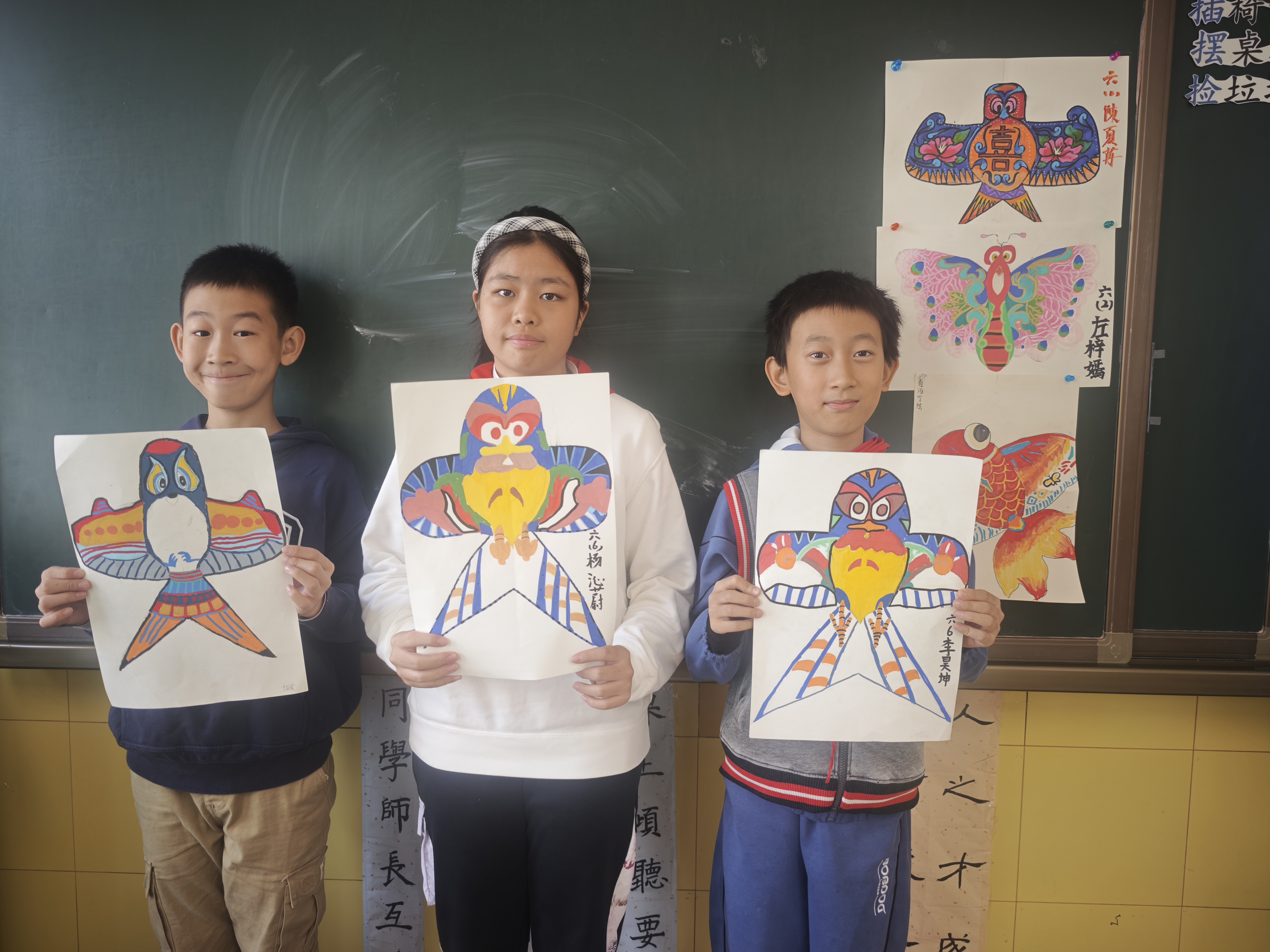 自主选择传统元素,完成风筝绘制,教师巡回指导。最终