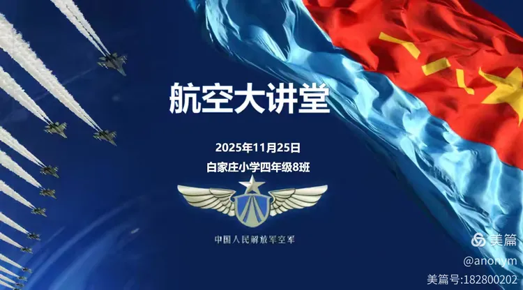 我知道!航空是在大气层里的飞行!”“九三阅兵有歼-20!”……11月25日下午,四年级(8)班的教室里气氛热烈,惊叹声此起彼伏。原来,这是班级家委会为同学们精心策划组织的“航空大讲堂”主题活动现场。吴泽瑞妈妈为同学们邀请到了从事航空知识教育事业的王磊老师,为孩子们带来了一场精彩纷呈的航空航天知识启蒙盛宴。