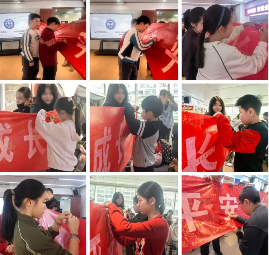 活动最后,教官组织孩子们在长长的横幅上郑重签下自己的名字,并合影留念。大家齐声喊出响亮的口号:“拒绝霸凌,平安成长! ”