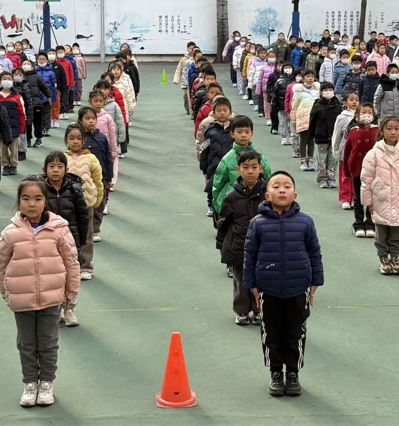 比赛前,各班级充分利用课间、体育课时间积极备战。班主任与体育老师全程指导,同学们相互纠错、默契配合,从队列队形的整齐划一,到动作节拍的精准衔接,再到精神面貌的昂扬向上,每一个细节都凝聚着集体的努力。学子带着稚嫩的认真,动作虽略显笨拙却充满童趣。