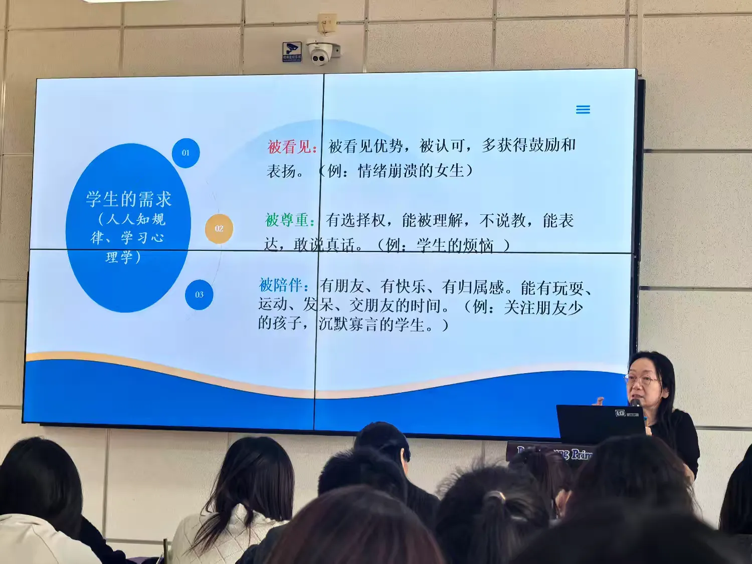 朱主任强调:家长的核心需求中,安全与健康始终排在首位,包括人身安全、饮食安全、视力脊柱健康和心理健康。其次是能力培养与尊严公平需求,希望孩子获得全面发展,得到公平对待。学生则渴望被看见、被尊重、被陪伴,需要老师的鼓励认可,拥有表达机会和归属感,不怕批评但怕被忽视。