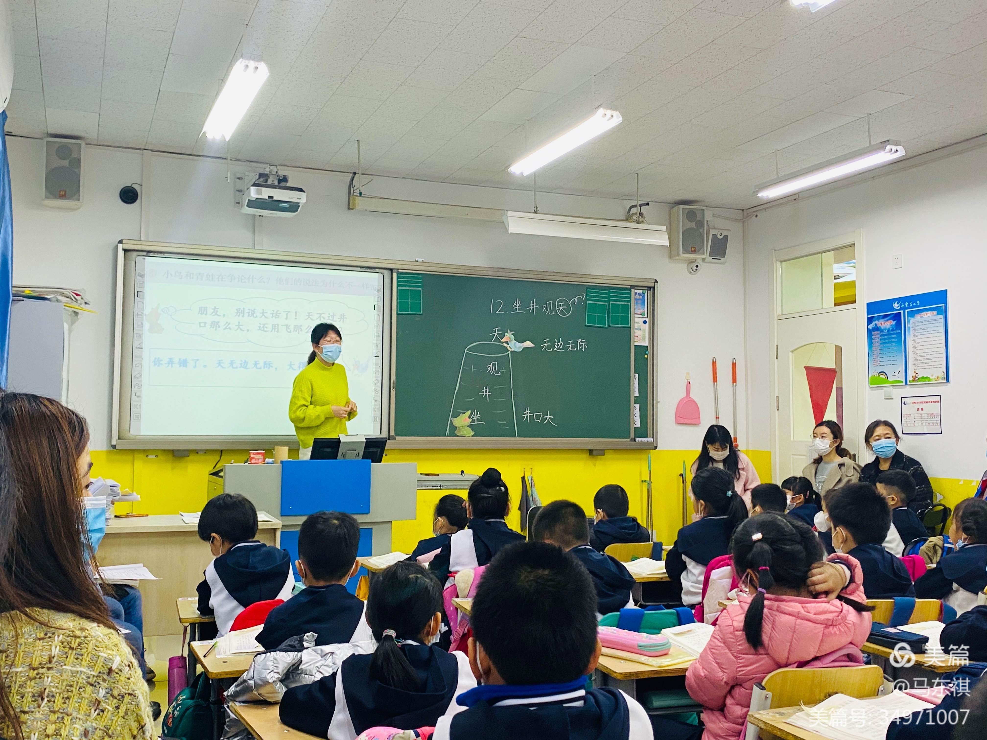 课堂展示的教学内容是二年级上册的寓言课文《坐井观天》。在这堂课上,史老师充分关注到课标中对于第一学段寓言的阅读要求、关注单元语文要素中对表达多样性的要求。本堂课,史老师通过从课后习题“小鸟和青蛙在争论什么?他们说法为什么不一样?”这一核心问题入手,引出本堂课的教学重点,贯穿教学的整个环节。通过引导学生反复读文感受对话中的语气和想法,拓展运用语言等,设计高阶思维任务,一步一步达到理解语言、了解内容、感悟寓意的教学目标。