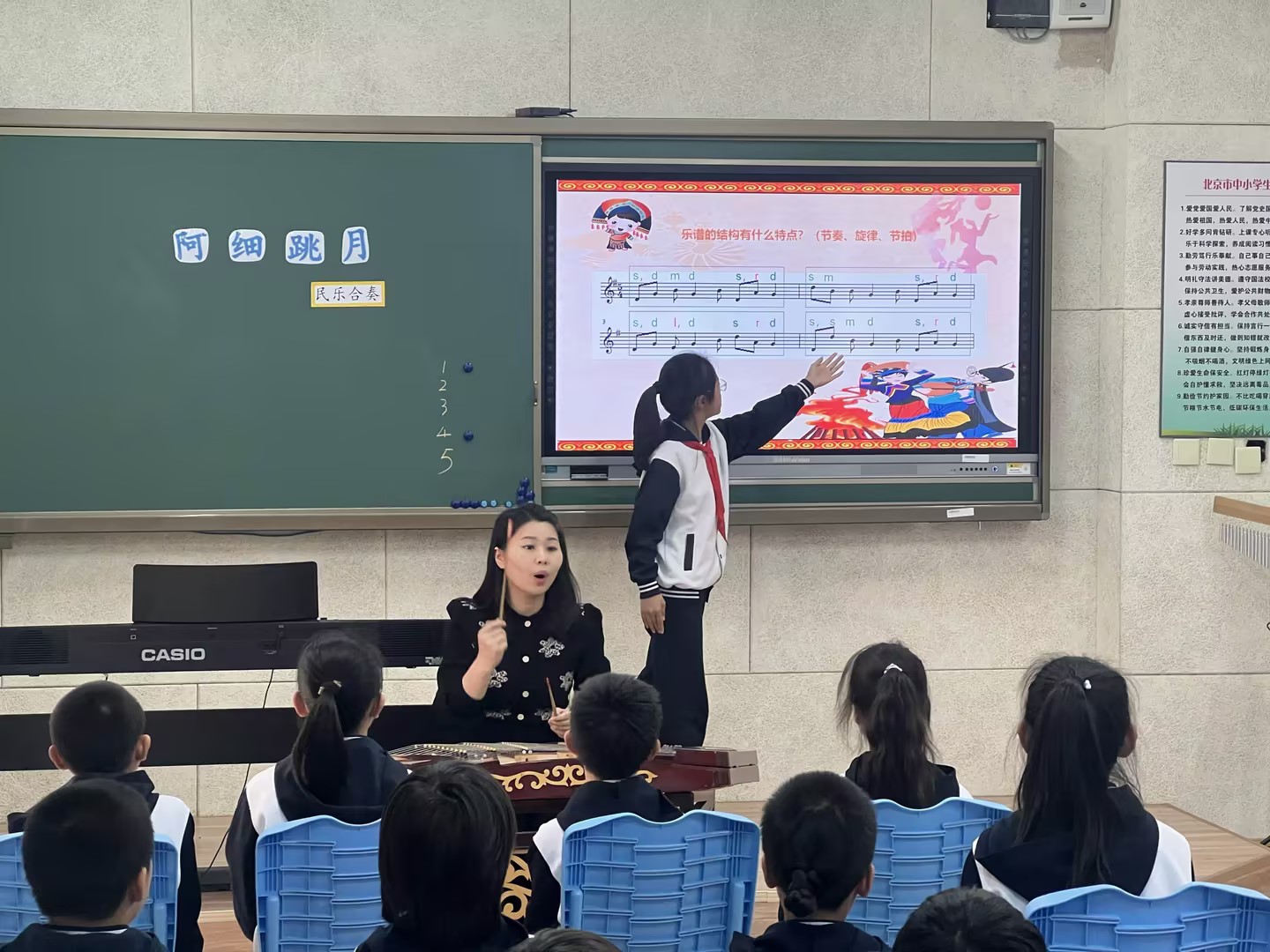 2025年4月17日,安徽省新时代中小学名师名校长团莅临北京市朝阳区白家庄小学珑玺校区,开展参观学习活动。音乐学科朱莹旭老师《阿细跳月》课程中,带领学生边跳边舞学唱音乐主题,学生们认真倾听积极互动表达想法,学生们沉浸在音乐的海洋中。