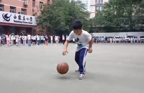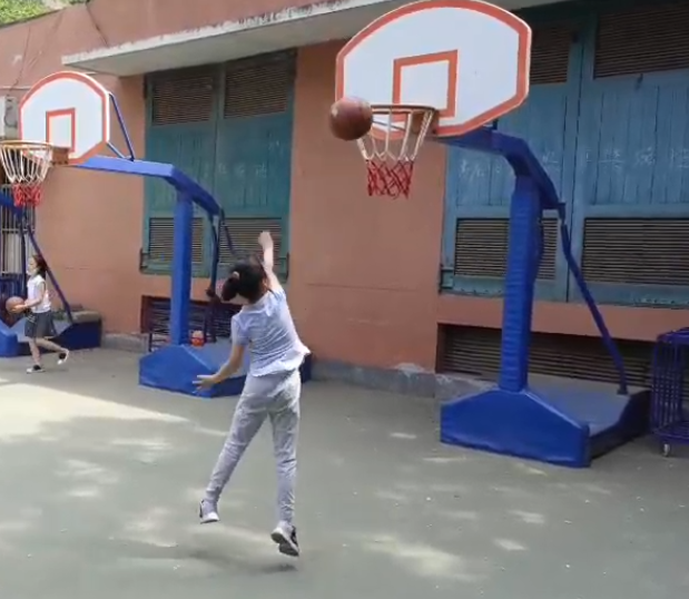 在这一个学期里,学生们基本掌握了原地运球、行进间运球、相互之间的传球等基本技术。但是同学们最喜欢的还是投篮入筐的练习,每一次篮球入网都让学生们兴奋不已。