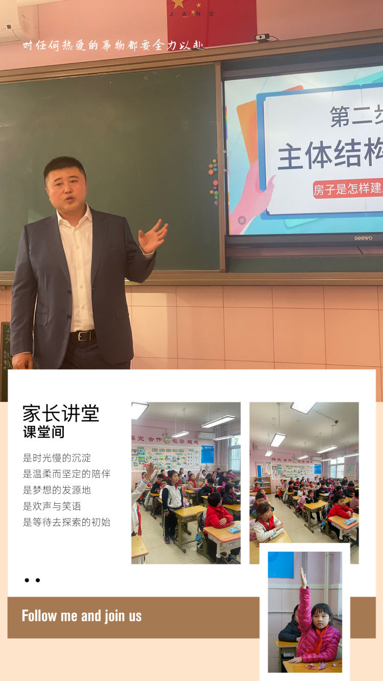 在此感谢步一阳爸爸为孩子们带来的精彩演讲和分享!他的专业知识和热情为孩子们树立了一个榜样,让他们了解到建筑不仅是一门学科,更是一种艺术和责任。我们期待未来有更多这样的家长讲堂活动,为孩子们带来更多的知识和启示!