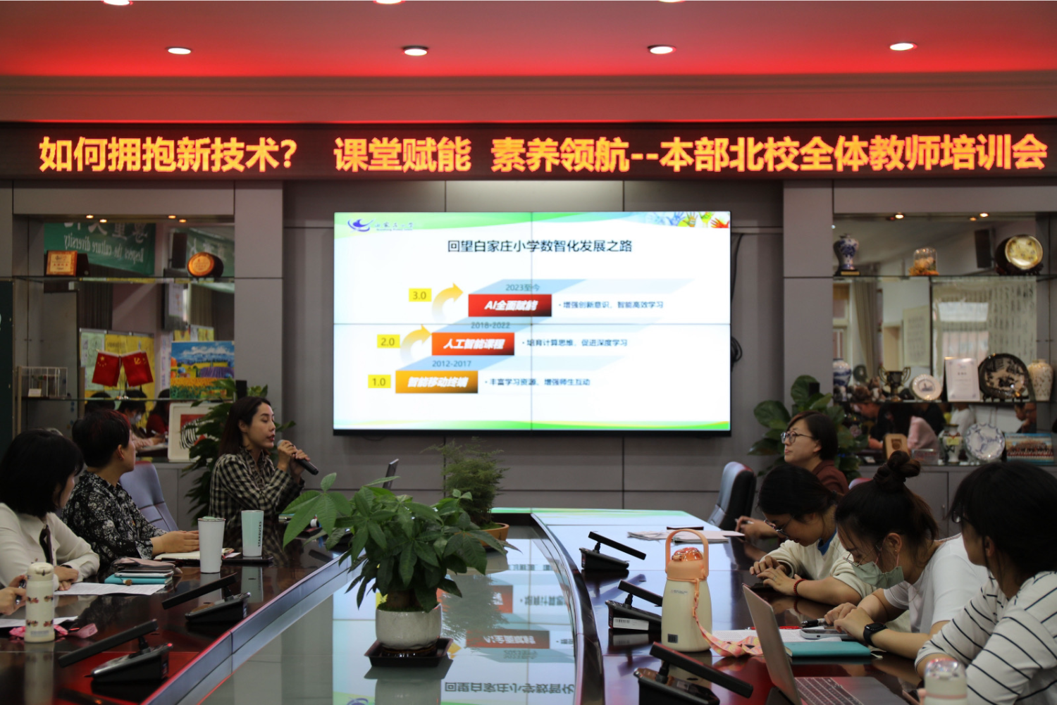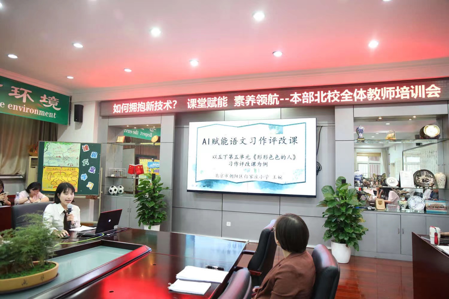 2024年4月26日,白小北校进行了AI课堂赋能全体教师培训会。会上北校教学主管卢迪茜主任建议教师们在日常教学中使用各类辅助软件,王婉主任进行了经验的介绍,指出了当前作文评改面临的状况,要有针对性的使用新技术进行教学。杨丽老师结合自己的经验表达了利用新技术的过程中面临的挑战,要进行个性化教学,和对学生个体化关怀。会后,多位老师也分享了自己的见解和感悟,在未来教育的变革和发展中,我们要拥抱新技术,为教学打下坚实的基础。