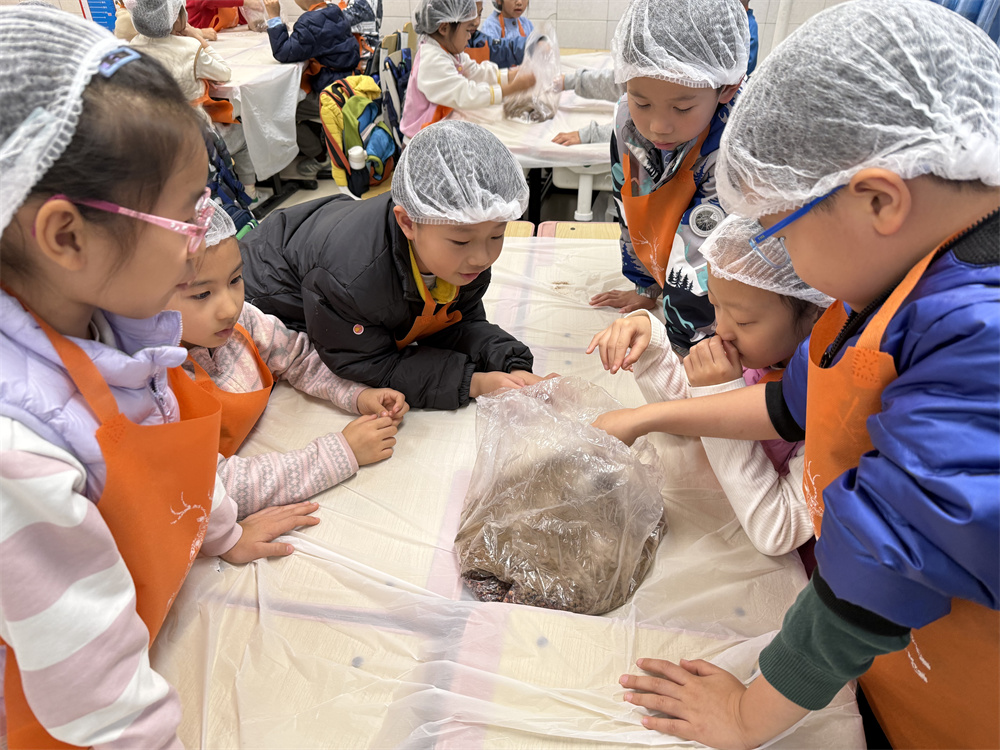 2025年11月4日,一场别开生面的食育课在二年级4班的教室里热闹开展,主角是常见却充满奥秘的鸭蛋。课堂上,老师先展示了新鲜鸭蛋和咸鸭蛋,孩子们好奇地观察、讨论,小手举个不停,分享自己吃鸭蛋的趣事。接着,制作环节开始,孩子们分组合作,仔细清洗鸭蛋,用毛巾轻轻擦干。在老师指导下,他们给鸭蛋裹上白酒、沾满食盐,再用保鲜膜包好,放入密封罐。小小的身影满是认真,眼睛里闪烁着期待。