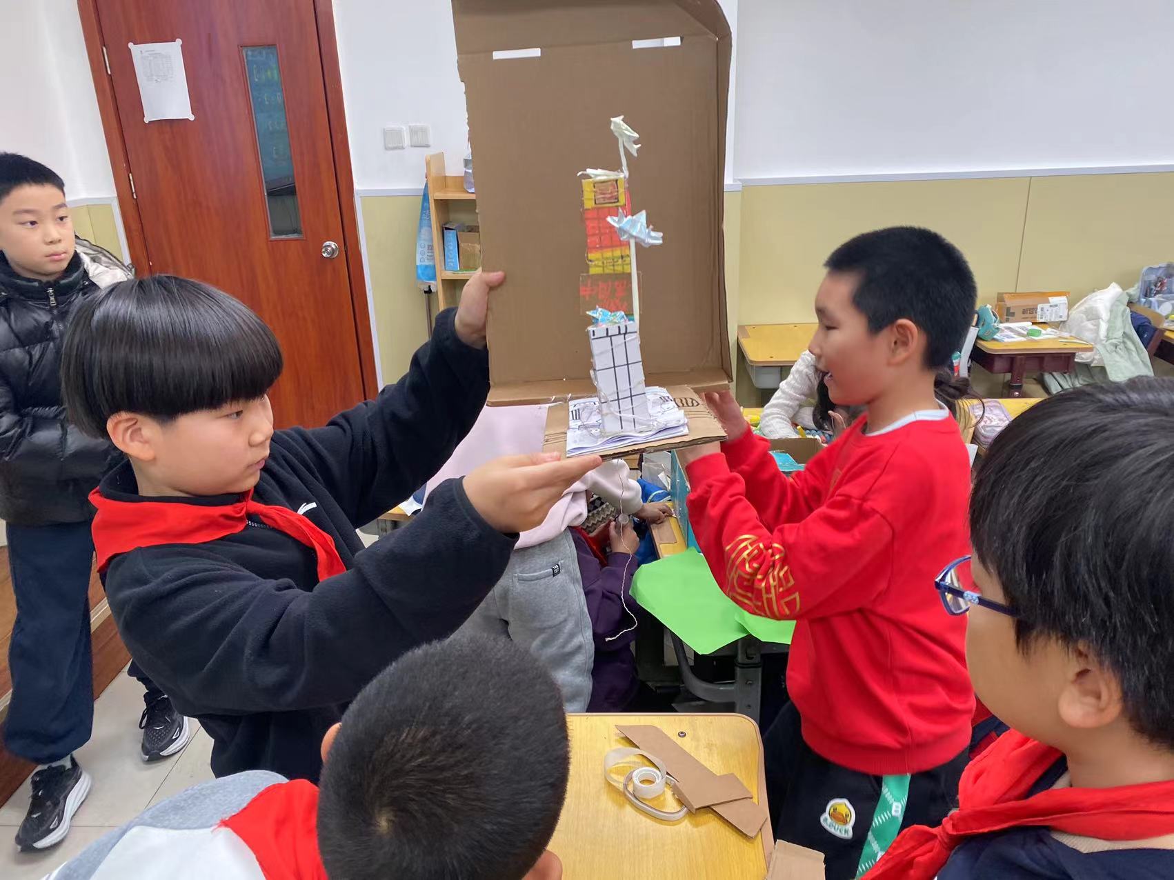 ,筹备进入冲刺阶段,孩子们在家中寻找闲置物品,将旧卡牌、衣物、积木等变为改造素材,伴随着裁剪与粘贴的声响,一件件作品陆续诞生