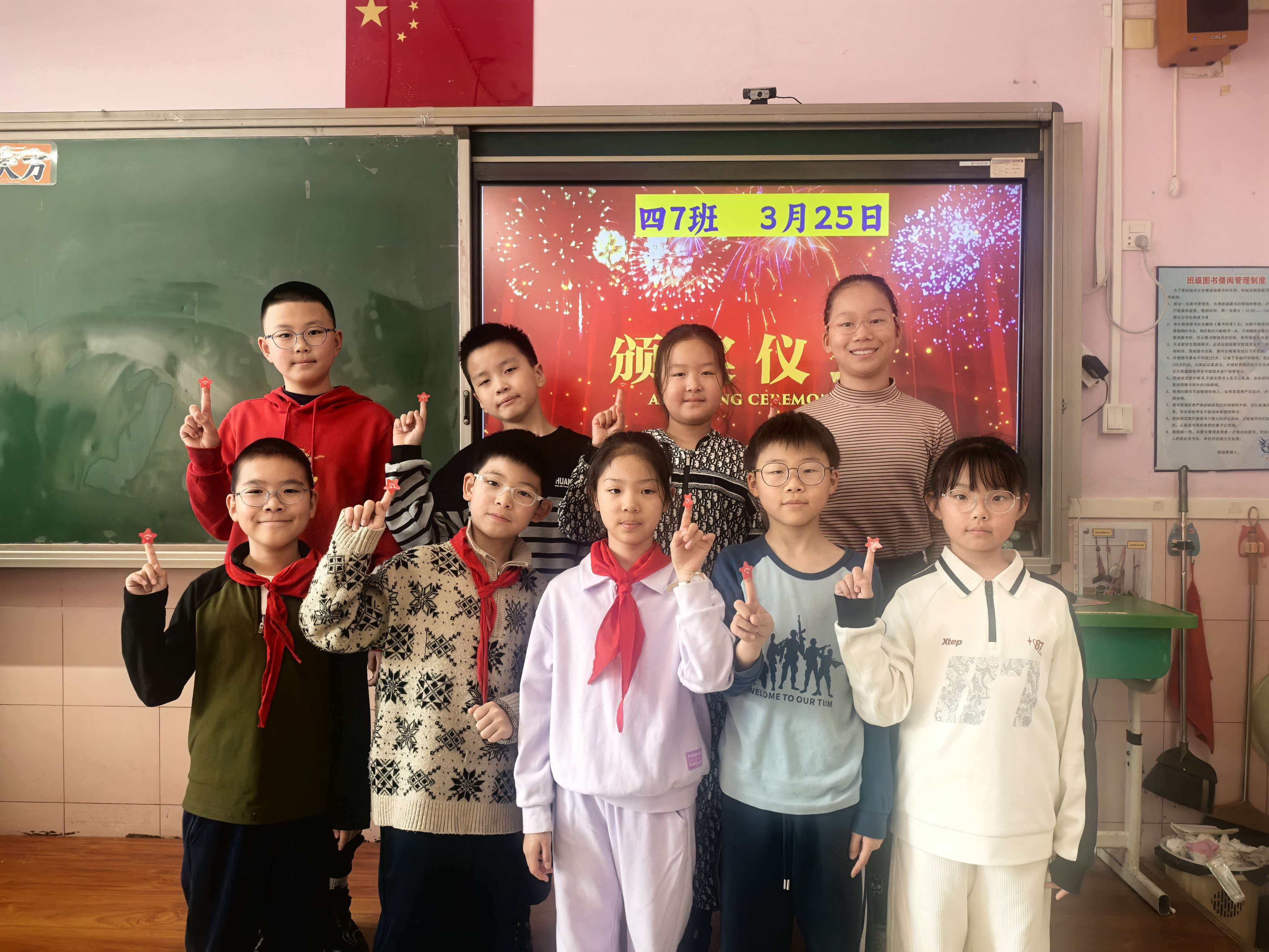 为培养学生良好行为习惯,激发成长内驱力,四 7 班每月定期开展班级争星评选活动。本次评选围绕自主探究、坦诚交往、强身健体等多项习惯维度,经自主申报、日常表现考核、班级评议等环节,最终评选出各维度表现优秀的学生并授予星级称号。争星活动让每位学生都能找到自身闪光点,在班级内形成了 “人人争星、个个争优” 的良好氛围,也让良好的行为习惯在潜移默化中融入学生的日常学习与生活。