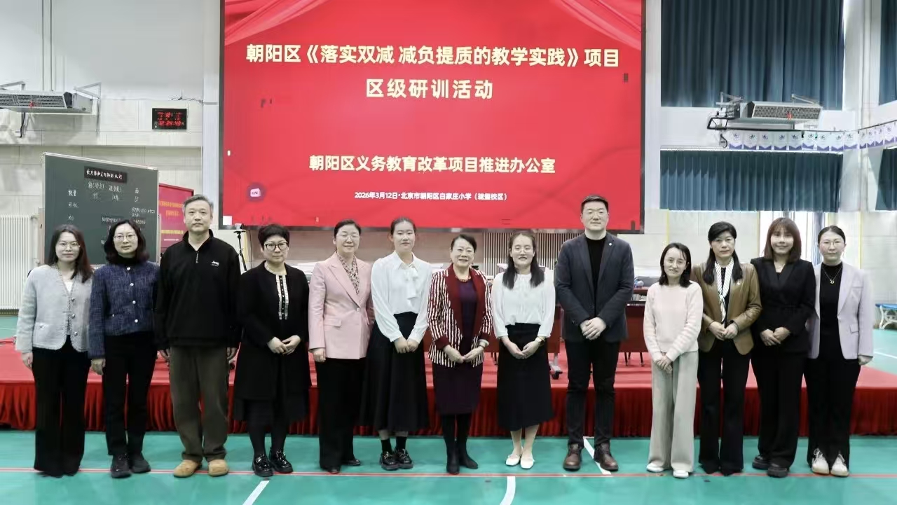 为深入落实“双减”政策要求,全面践行新课标理念,2026年3月12日,朝阳区《落实双减 减负提质的教学实践》项目研训活动在北京市朝阳区白家庄小学教育集团(珑玺校区)顺利开展。活动以“图表册” 为核心抓手,聚焦教学设计的整体性与科学性,助推学生高阶思维发展,赋能区域教育教学提质增效。作为本次区级研训活动的承办方,白家庄小学教育集团为全区教育同仁搭建优质交流互鉴平台,尽显区域教育示范引领作用。